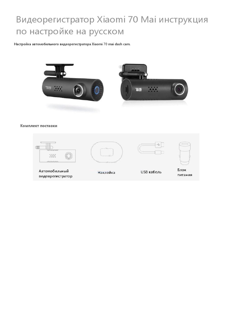 Инструкция Видеорегистратора 70 MAI на Русском Языке