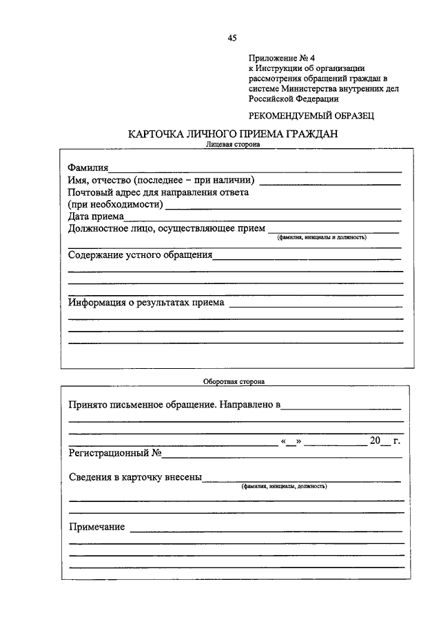 Инструкция 45 о Порядке Рассмотрения Обращений Граждан